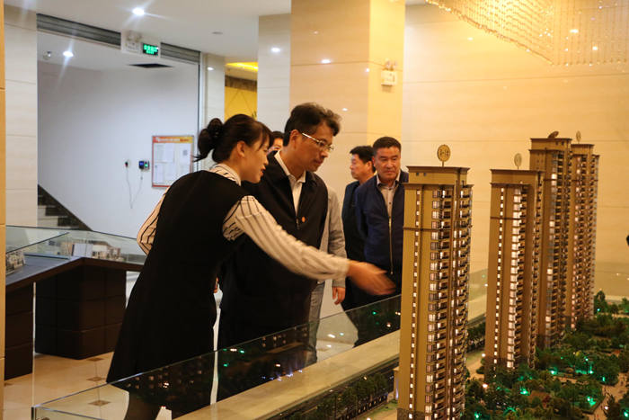 (图三:名京集团工作人员向郭市长一行介绍名京·公园一号项目)