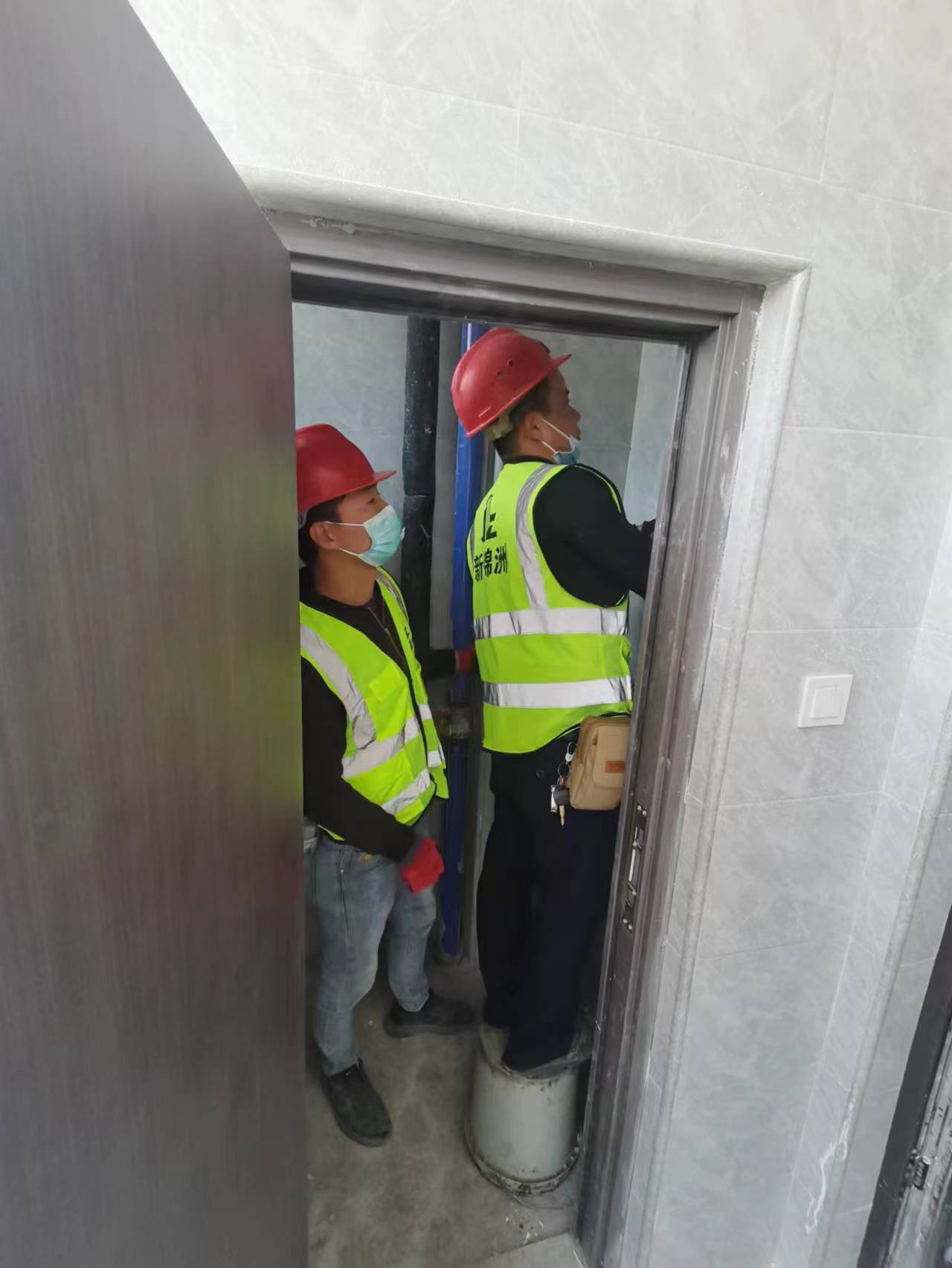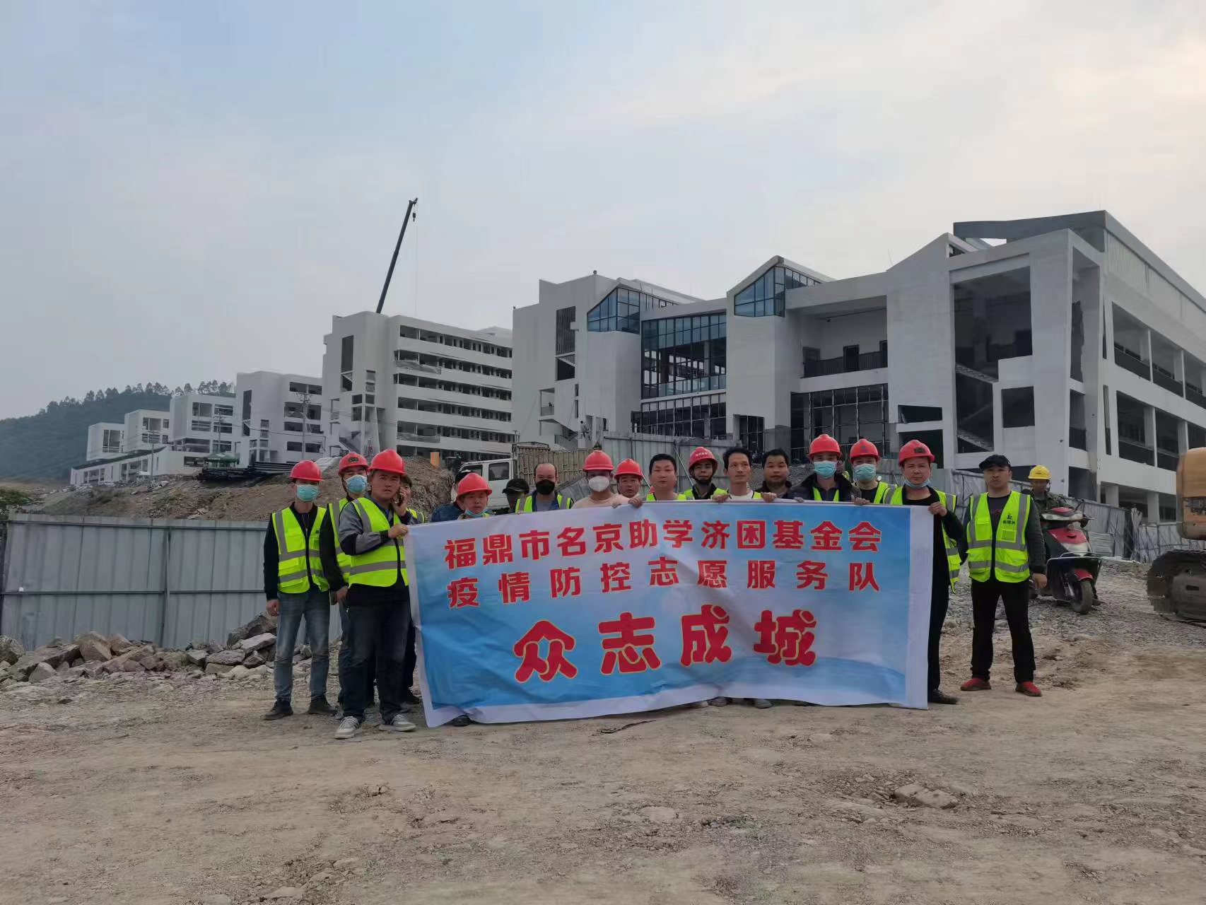 2021年12月,名京助学济困基金会工作人员于福鼎市集成校方舱医院,帮助该医院工程安装工作。为抗疫助力!
